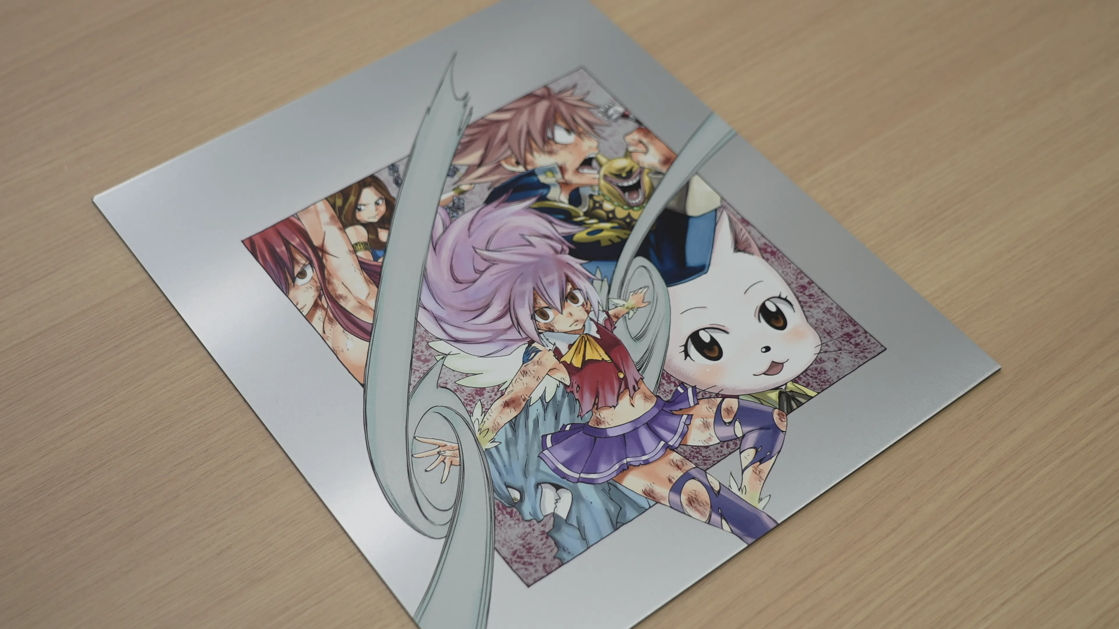 「版画」とは、作家の原画を元に、職人の手作業で一枚ずつ制作されるアート作品です。インクの重なりや風合い、素材による表現の違いが原画とは異なる魅力を生み出します。本展では、その魅力を活かしたFAIRY TAIL版画を多数展示いたします。